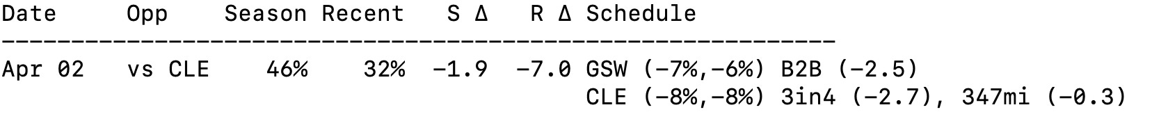 CLE is a top team (playing like the #6 best team in the league recently and season-long) that’s fighting for playoff position (even though it’s only the difference between the 3 seed and the more likely 4 seed).