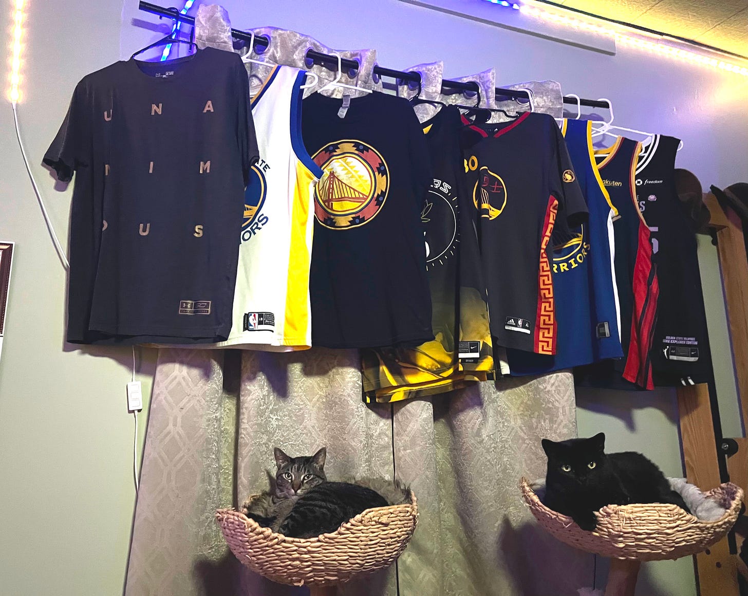 Marshall Lee on the left, Raven on the right. They have watched many a Dubs game with me, although Raven was a street player before he got badly injured and we brought his game inside. He once had mad hops but is pretty sedentary these days.