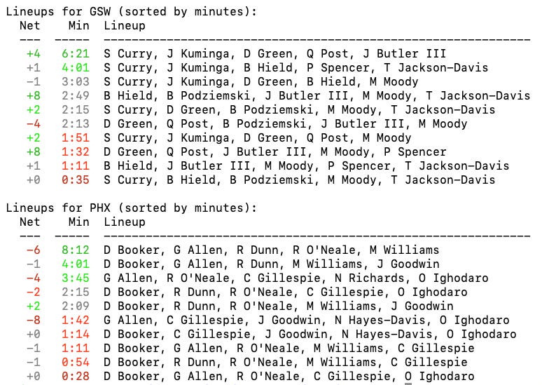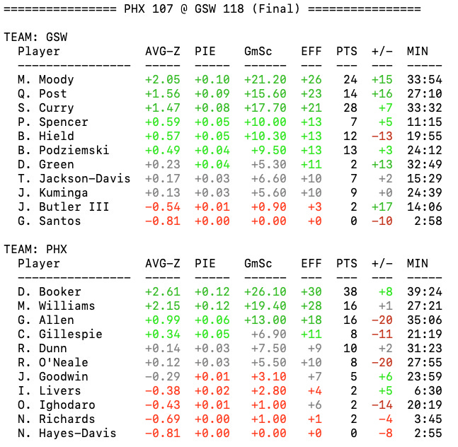 Game 8 wrap: Warriors go up big, hang on to overcome Booker’s 38; Moody pours in 24Jimmy leaves at halftime with bad backEric ApricotNov 05, 202533ShareBox ScoreBox ScoreAPRIBOT Box ScoreWarrior WonderLast game’s winner Jimmy Butler is not eligible.Loading...Dub Nation HQ is a reader-supported publication. To receive new posts and support my work, consider becoming a free or paid subscriber.SubscribePrevious