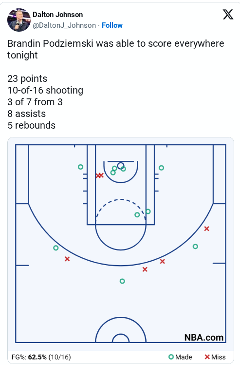 23 points on 16 shots, to go along with 8 assists and 5 rebounds is the sort of all-around masterclass that forces coaches to give a player more minutes.