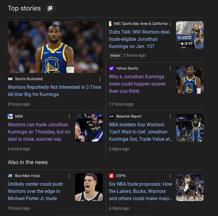 In front of all of this, all eyes will be fixated on the newly opened trade window for Jonathan Kuminga. After being glued to the bench and clearly on an imposed hiatus it’s widely assumed that the Warriors absolutely must move their former lottery pick - which isn’t exactly helping their trade market value (which was already palpably thin).