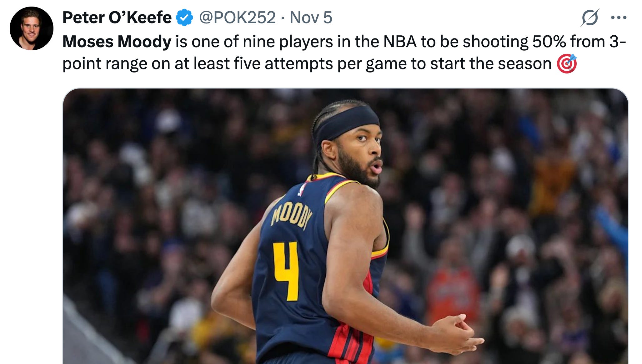 This is the Klay Thompson blueprint. Not the volume, not yet the consistency, but the fundamental understanding that elite shooting is about discipline as much as skill. Thompson built a Hall of Fame career on knowing when to shoot and when to swing. Moody is 23 years old and already grasping what took others years to learn.