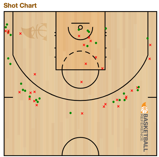 Btw here’s his shot chart on the season, 47% from the field, 51% from beyond the arc, 85% of them assisted.