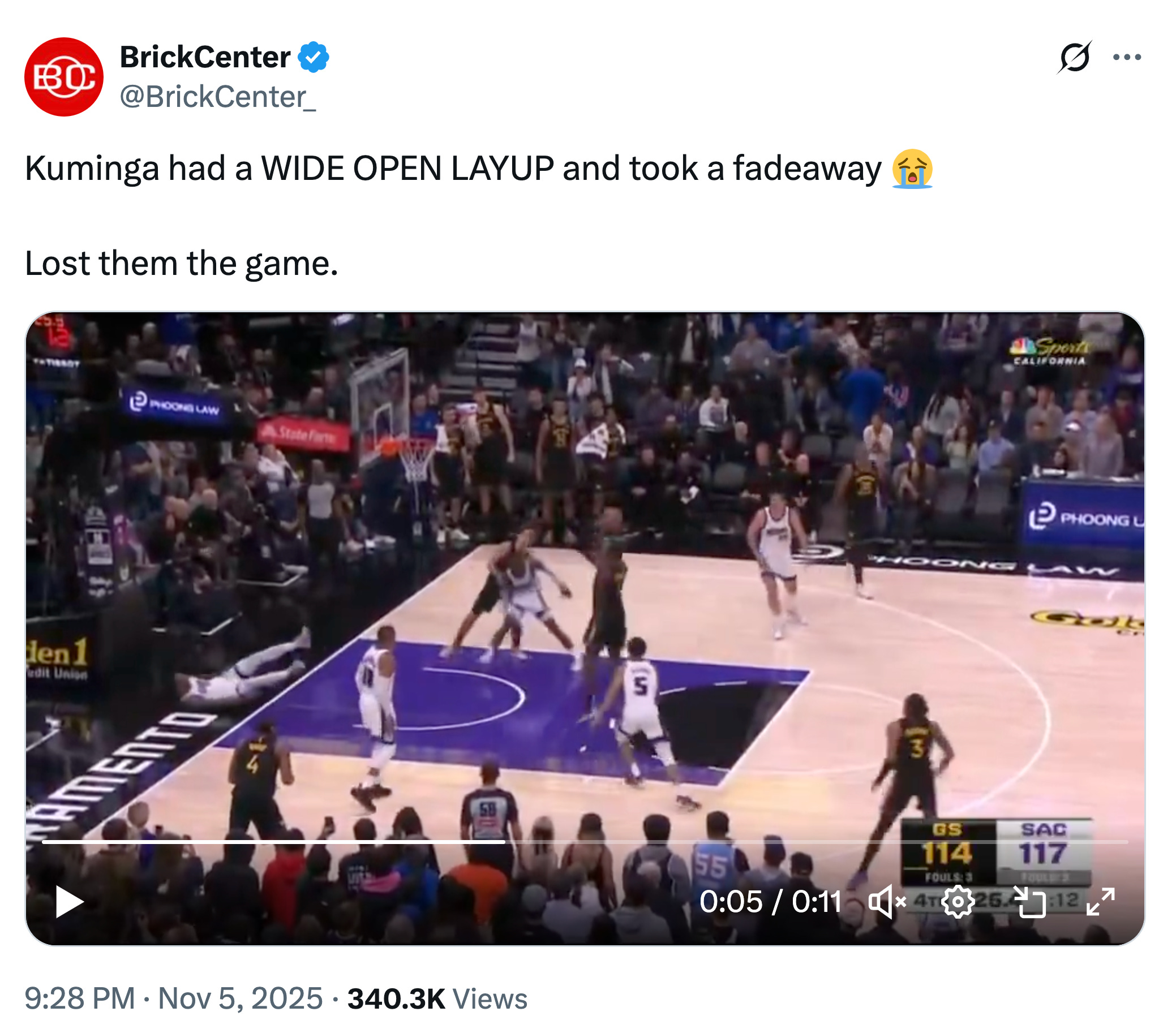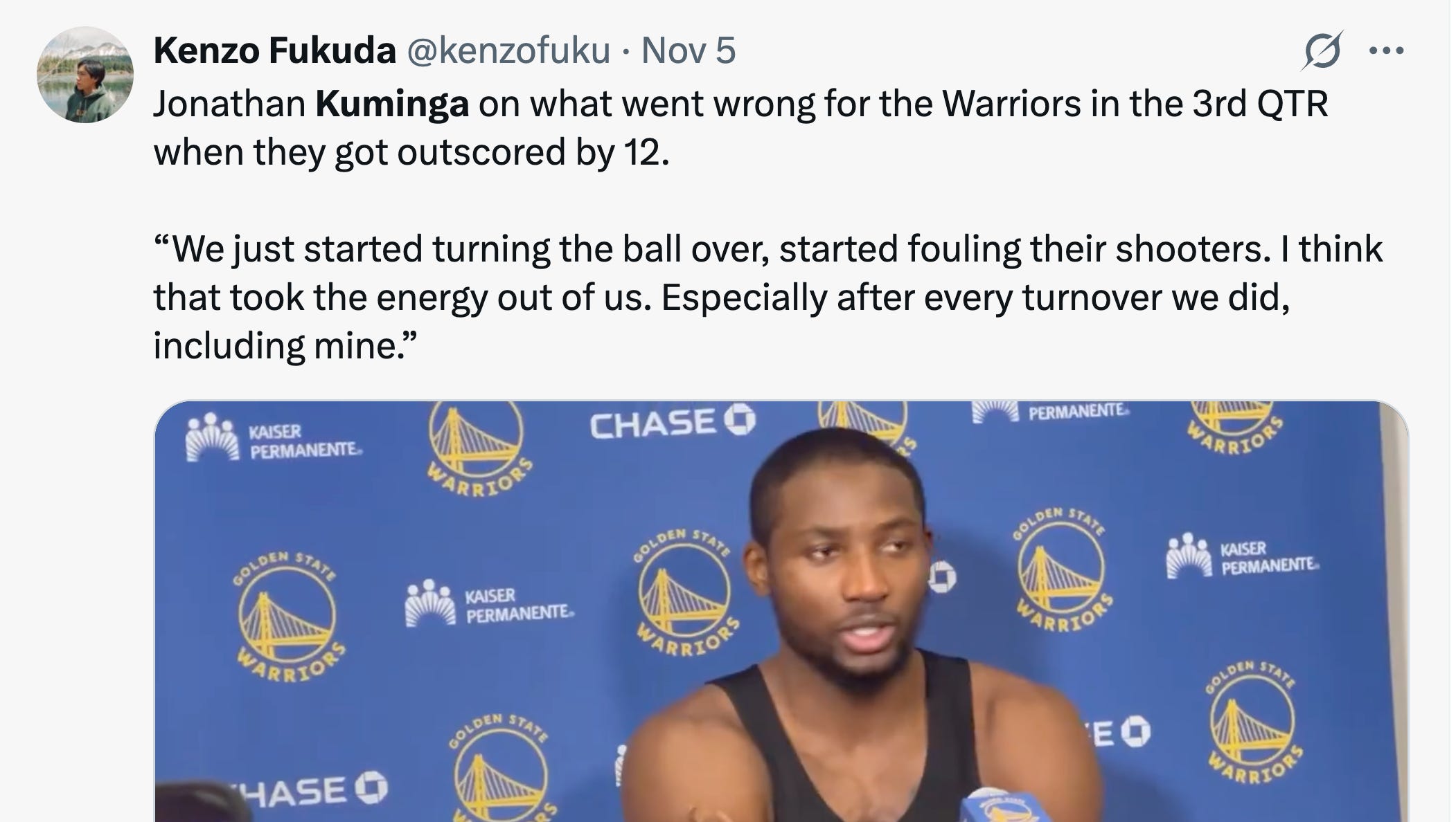 Yes, that’s referring to Jonathan Kuminga who had a chance to keep the game in the balance last night, but shot an off balance fadeaway after his man had already been discarded to the floor.
