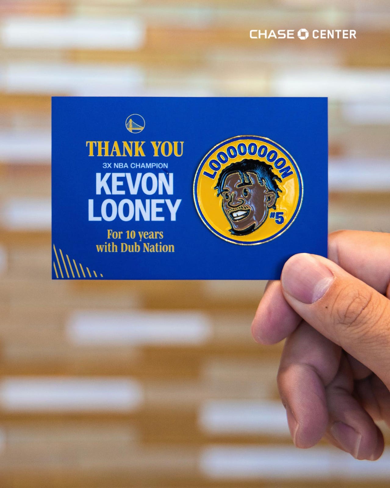 He took less money to stay in the Bay, never complained when the coaches yo-yoed him from DNPs to starting back to the bench, changed his body to play out of position and was always in the right place at the right time. With all of these paradoxes about Looney’s Warriors tenure nevertheless proving true, it was fitting that a player who has never been an All-Star or earned name recognition from casual fans received a hero’s welcome. There was a touching tribute video, and the team distributed a delightful commemorative pin to honor the contributions of a role player to a dynasty full of stars.